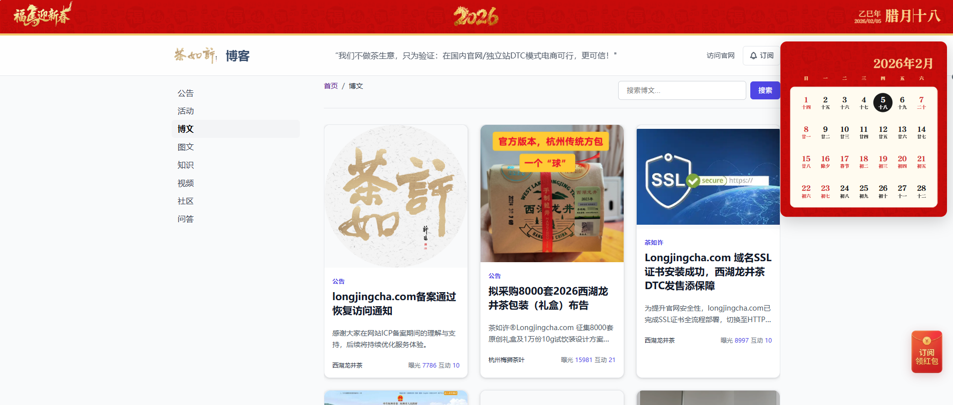 西湖龙井茶DTC官网上新春版,订阅网站更新领红包领不停