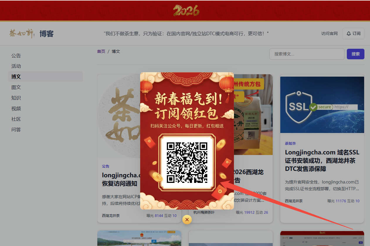 新春将至,我们为关注2026年西湖龙井茶DTC直售的您,准备了一份拜年心意。以下为红包福利领取的完整指引,助您轻松参与、提前锁定购茶优先权。