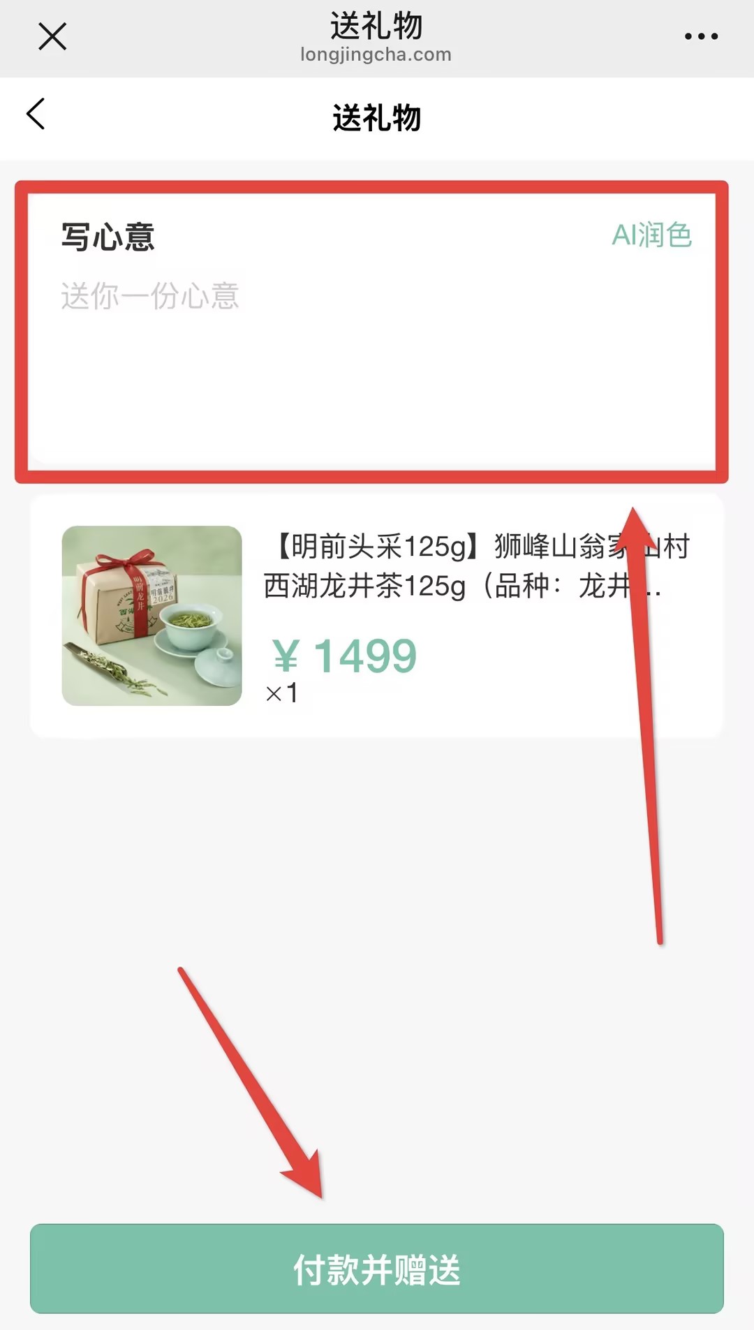 (手机端截图展示) 第二步:填写赠言,体验“AI润色”
