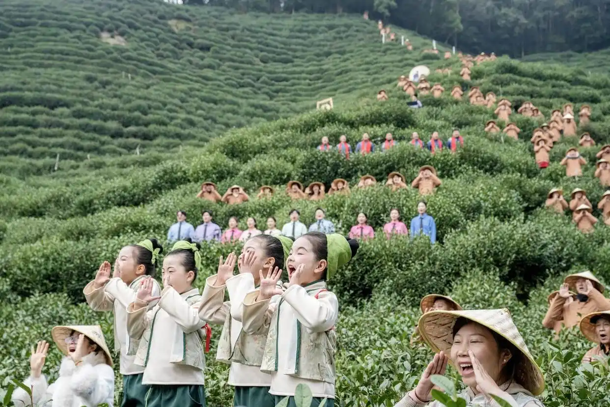 3月5日,惊蛰,杭州市西湖区满觉陇马儿山茶园举行的2026“醒春·喊山”活动上,孩童清亮齐呼:“西湖龙井,发芽啦”。“喊山祈丰”源于唐宋,是茶农敬天畏地的质朴信仰。