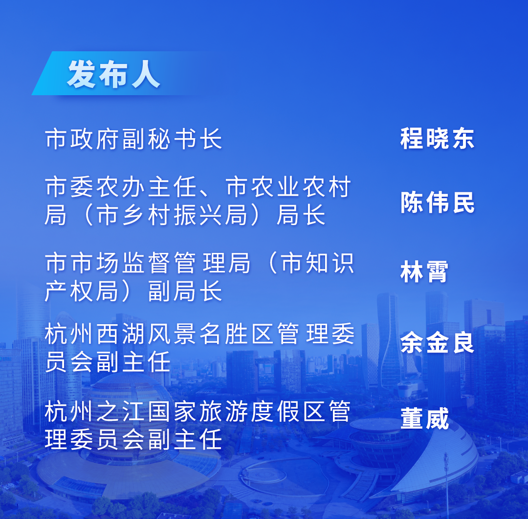 资料/市委宣传部(市政府新闻办)、市农业农村局(市乡村振兴局)、市市场监督管理局(市知识产权局)、杭州西湖风景名胜区管理委员会、杭州之江国家旅游度假区管理委员会