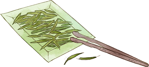 形美:叶底细嫩呈朵。干茶扁平、光滑、挺直,形似“碗钉”,冲泡后的叶底,细嫩柔软的芽叶在水中舒展,完整成朵,栩栩如生。