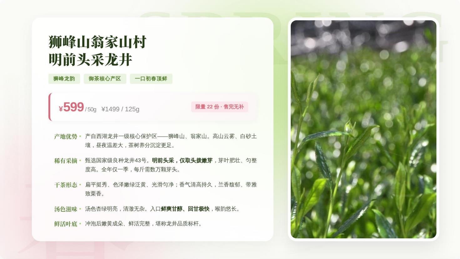 【125g】狮峰山翁家山村明前头采龙井茶125g